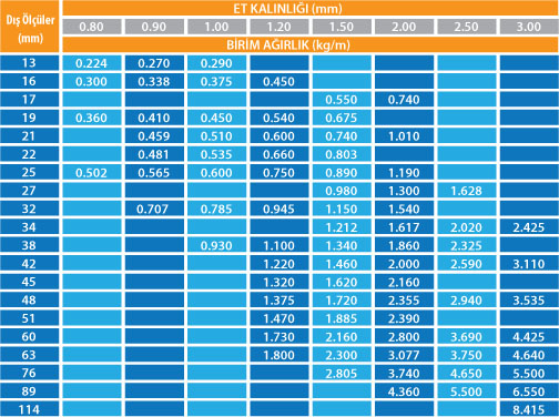 Ebatları Ø32-89 mm , et kalınlığı 2,00- 4,00